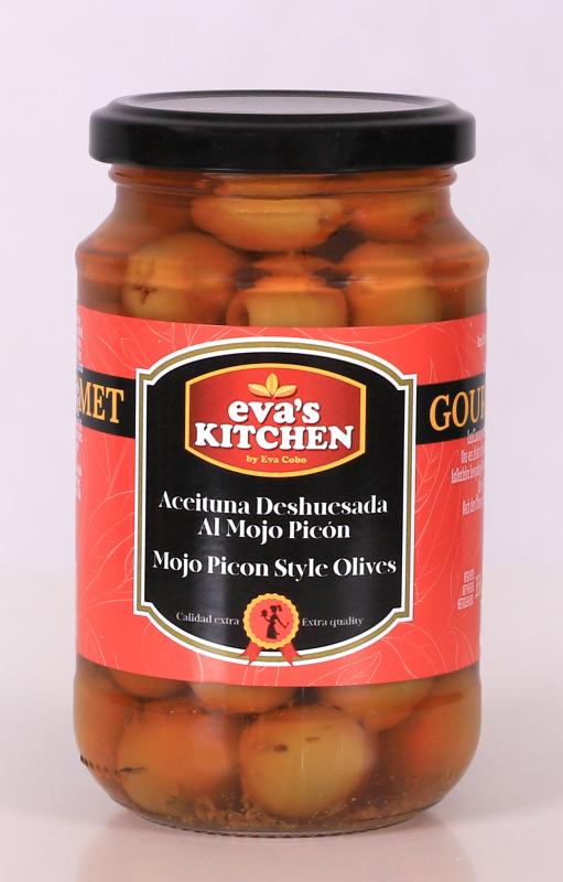 Aceituna Manzanilla sin hueso al Mojo Picón, 160gr. escurridos