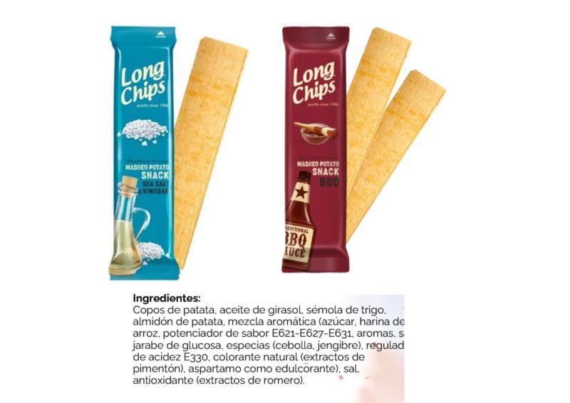 05/08/2025 Patatas LongChips BARBACOA - SAL& VINAGRE, envases de 75gr.Logistica; Cajas de 20 unidades.Envio desde Cordoba.Precio; 0.72€/und. Caja 20 und: 14.40€Documentación adjunta: