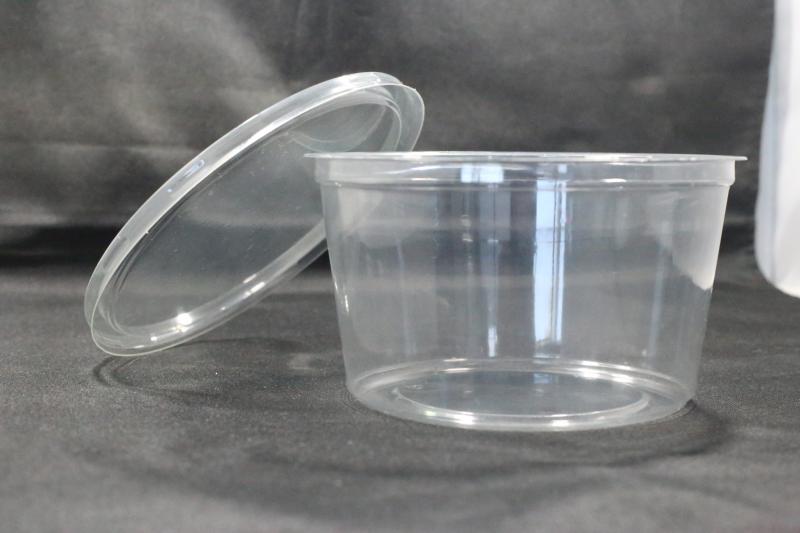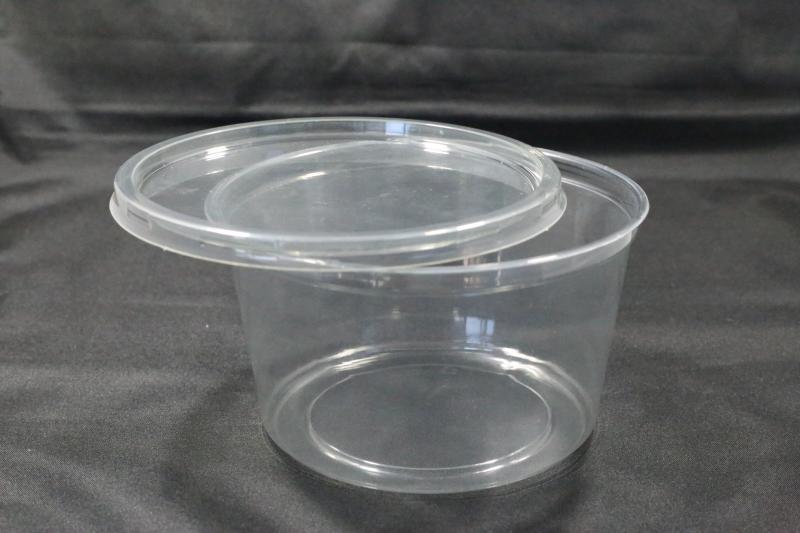 Tarrina redonda Rpet de 600ml de capacidad, con tapa incluida , pensada para ensaladas ,salsas y todo tipo de usos en el mundo de la alimentación. Proveniente de la marca coveris , van a cajas de 1400uds y hay un total de 40600 tarrinas y tapas.