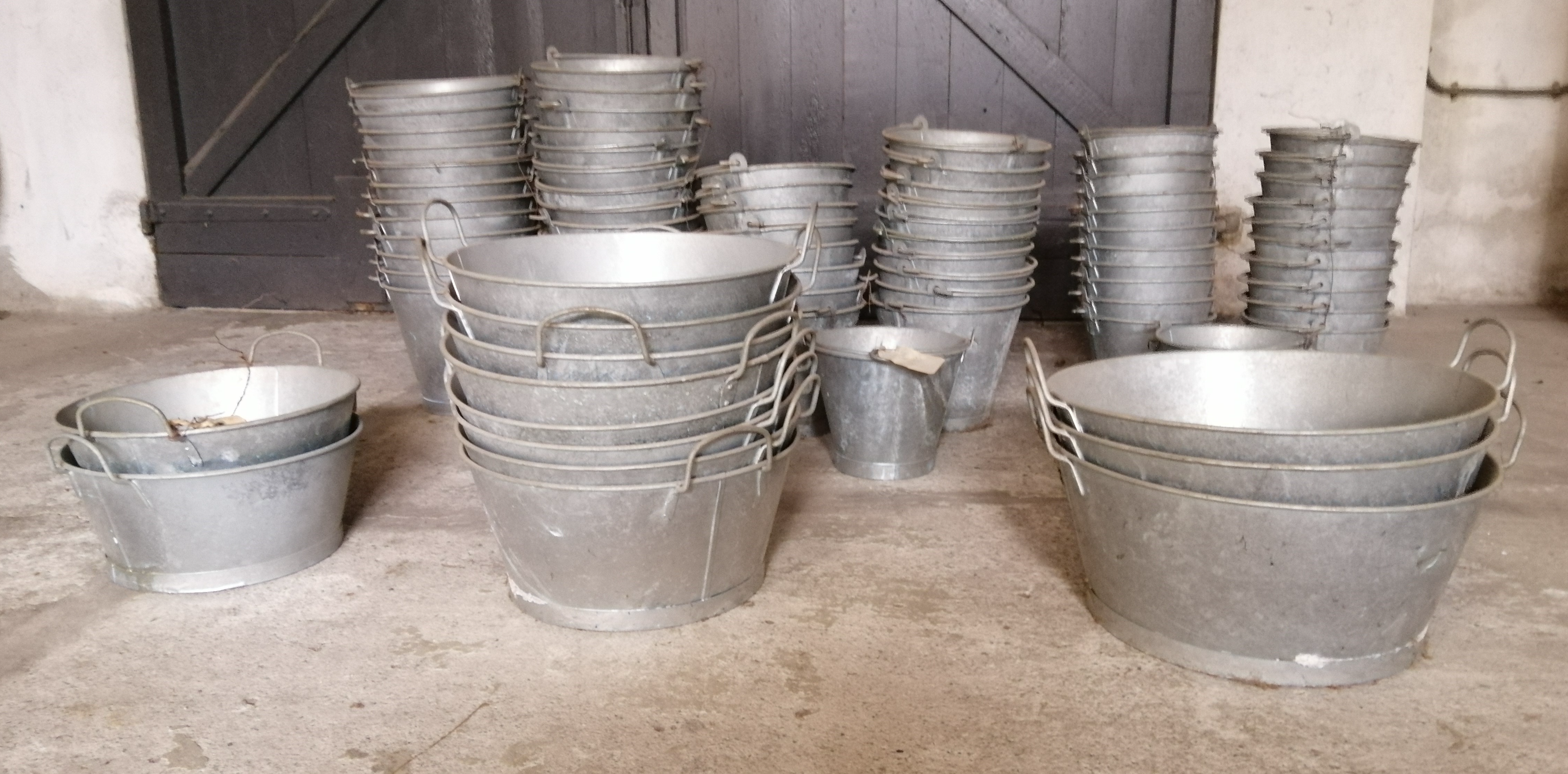 Se venden 120 calderos de zinc antiguos pero sin uso. Son de calidad extraordinaria: material de 1,5 milímetros de grosor. Precio por el lote 1.750 euros.