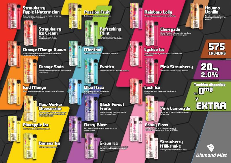 31/01/2023 Los Vapers Desechables Diamond Mist están por todas partes, vayas por donde vayas, siempre puedes gozar del pod desechable para todas las edades. Diamond Mist Bar, vaper que permite 575 caladas o puffs, con 23 sabores super intensos.