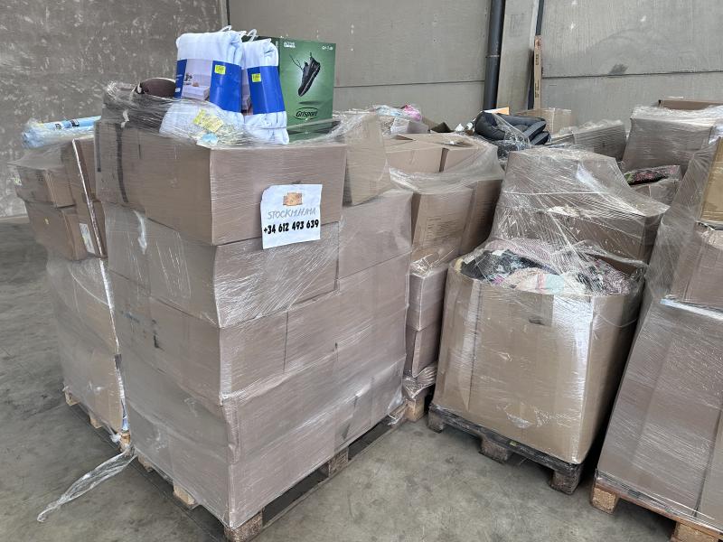 Camion de palet producto mixto, ARTICULO NUEVO.El Lote contiene de variedad productos bazar, HERRAMIENTAS / MENAJE COCINA / ROPA / CALZADO / JUGUETES / ELECTRODOMÉSTICOS / MUEBLES etc... MARCAS VARIADAS EN GENERALNo hay listado detallado de los productos presentes en los camiones, La única información disponible es la cantidad de palet y un abanico de unidades aprox 20,000UPRECIO 225€ / PALET??PRECIO 7’200€ / 32 PALET???????? VENTA LOTE COMPLETO 32 PALET ??????STOCKM.H.IMAMás información, CONSULTANOS+34 612 49 36 39?Galería de fotos del lote: