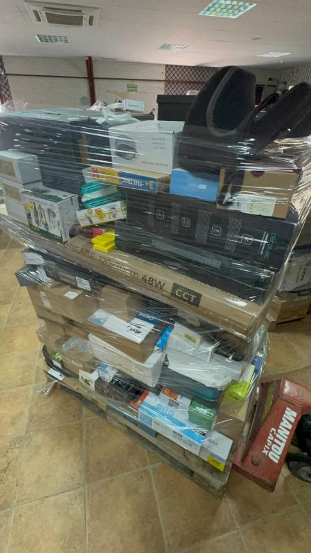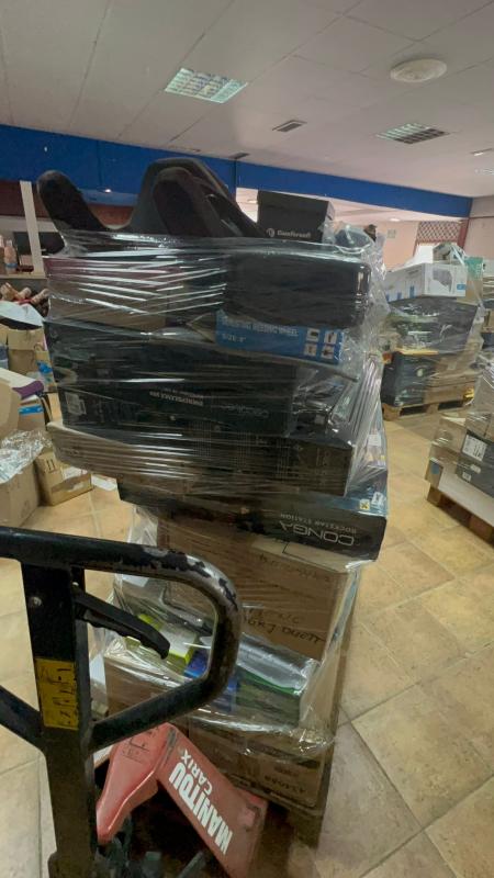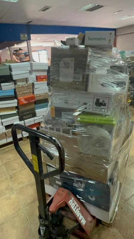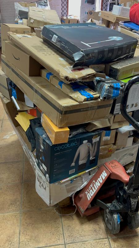 PALETS MIXTOSPallets de 200 a 220 artÃculos por palletTodo nuevo o de exposición8 o 10 piezas cubren en pecio de compra del pallet (900€) [ 5€ pieza ]Y el contenido es mixto en las siguientes categorÃas : electrónica, hogar, herramientas, domótica, electrodomésticos de gama blanca, e infantilPrecio compra vs PVP 24%Hay algunos que tienen un solo producto que ronda los 1000€Galería de fotos del lote: