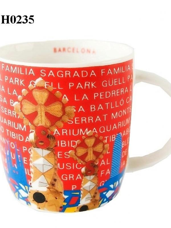 Taza mug de cerámica con serigrafías de Barcelona.