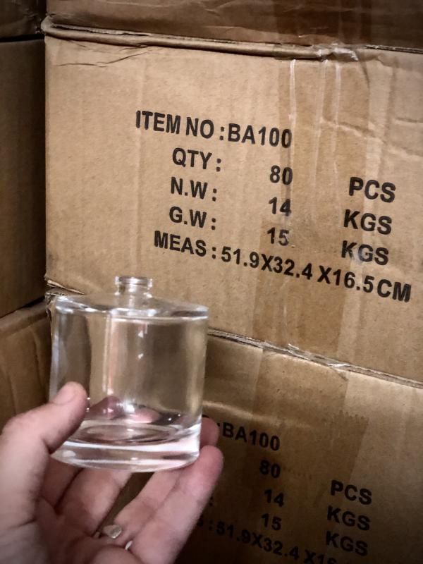 También tengo Frascos de perfume de 100ml, (2,700unid) .Con dosificador, spray + cápsula Fea15 y tapón negro mate. Paletizados.