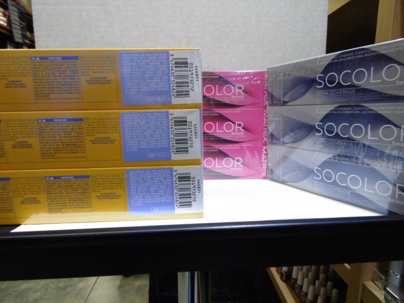 LOTE DE TINTES PARA EL CABELLO MATRIX SOCOLOR, CREMA DE COLORACIÓN PERMANENTE CON AMONIACO. ENVASE DE 90 ML. LOTE DE 2128 UNIDADES , TINTE SOCOLOR, COLOR CULT : TONE ON TONE, SEMI , DIREC. SOBLUR Y SOBOOST.PRECIO UNIDAD 0,50 €. TOTAL 1064 € + PORTES + IVA.Etiquetas: