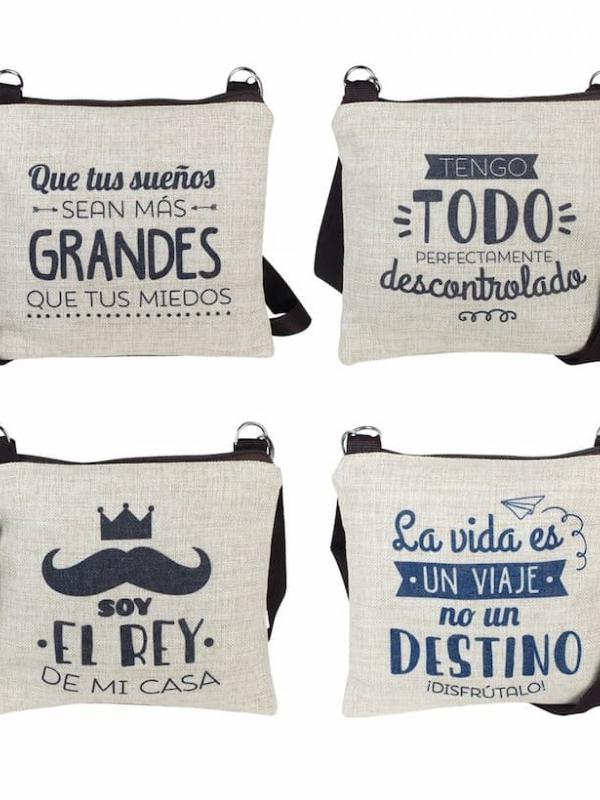 BOLSOS CON FRASES DISPONIBLE EN 4 MODELOS.