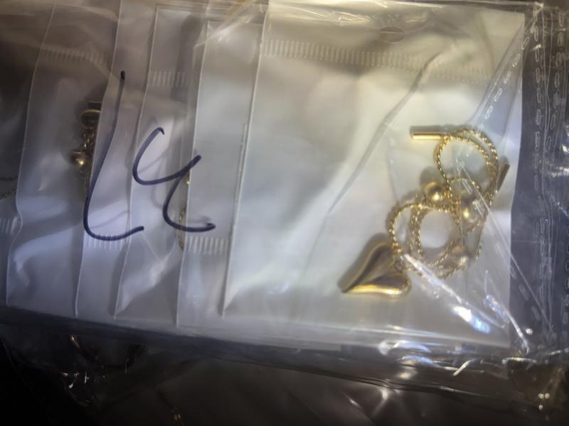Collares y Colgantes (Aprox. 800+ unidades): Una amplia selección de diseños que incluyen desde cadenas minimalistas hasta colgantes con motivos geométricos y de tendencia. Acabados elegantes en color oro de 18k.