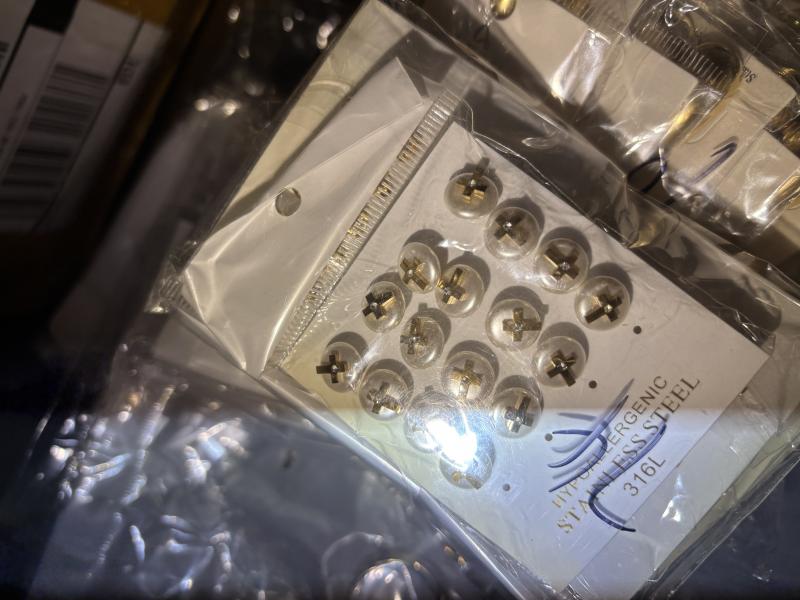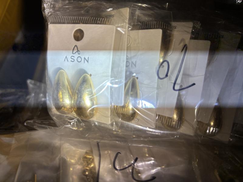 Pendientes (Aprox. 900+ unidades): Variedad de estilos que incluyen pendientes de aro (Hoops), pendientes de botón (Studs) y diseños con cierre de rosca. Gran presencia de modelos básicos y de moda.