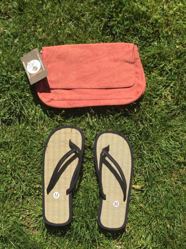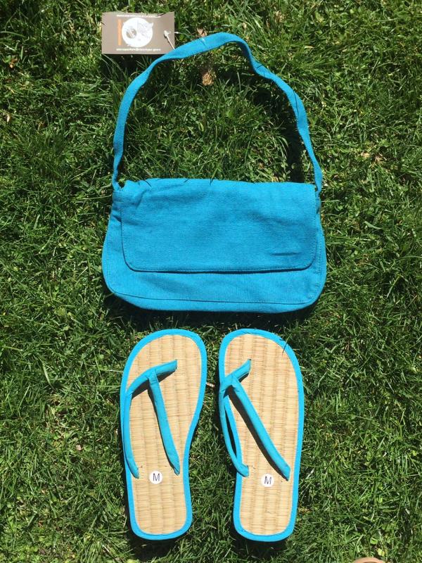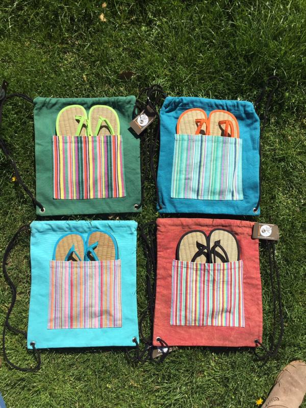 Liquidación de Bolsos, pareos, sandalias y mochilas. De diversas formas y colores. Todo nuevo en su embalaje original.