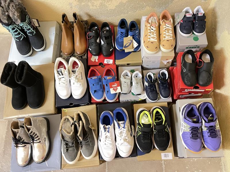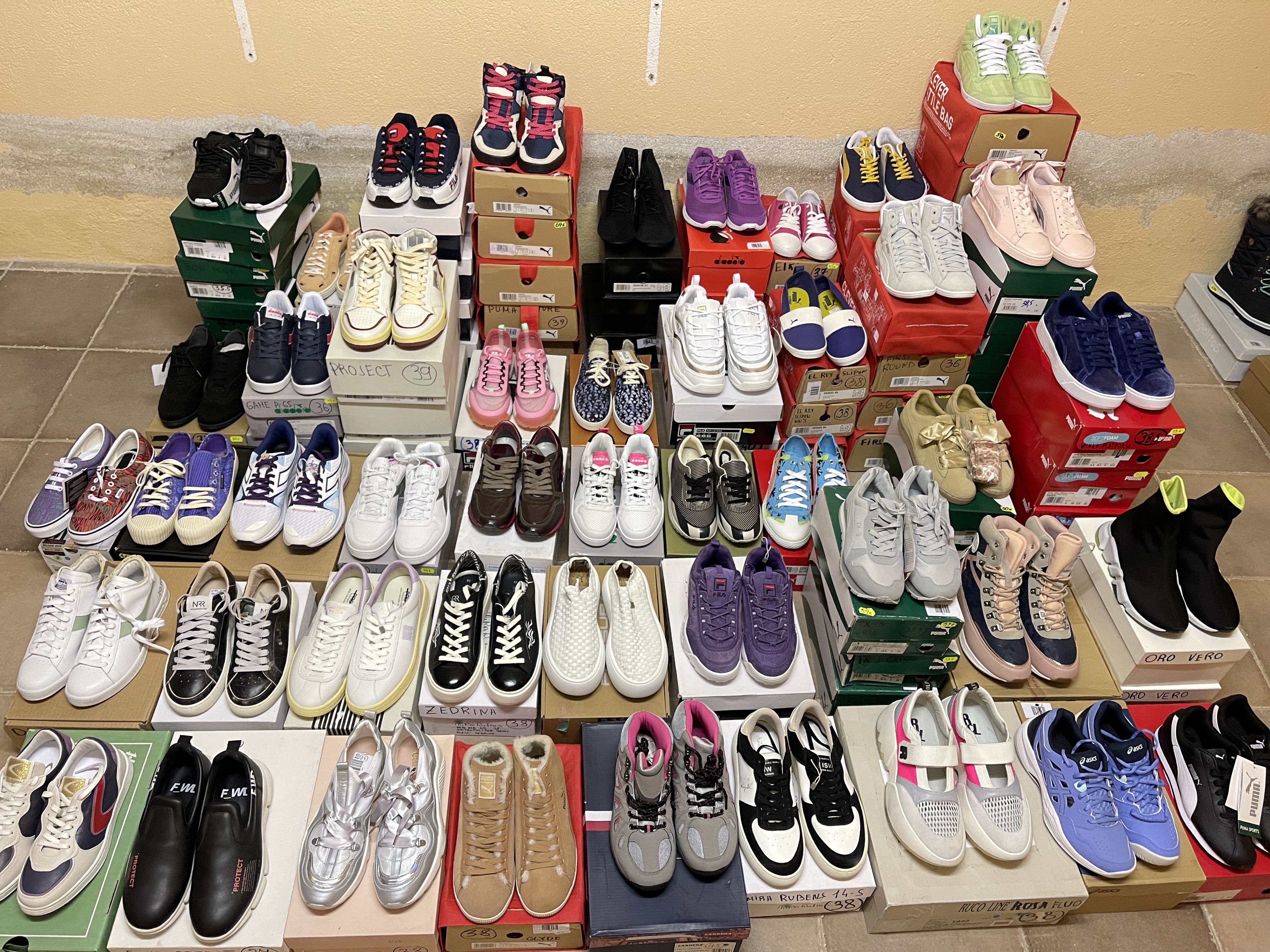 09/05/2025 Se vende LOTE COMPLETO 136 pares ( NO SE VENDE POR SEPARADO, ni solo bambas mujer o solo bambas hombre, POR FAVOR LEER ATENTAMENTE LOTE COMPLETO!!!!!!!!!!!!!!!!!!!!!!)Bambas de marca: Puma, Fila, Asics,Adidas,Niea Rubens, Rucoline, Project, Diadora, F-WD,Valsport, Vans, Daniele Ancarani.Bambas Mujer - 91 paresBambas Hombre- 22 paresBambas Nin@- 24 paresTalla mujer 36-41Tallas hombre 40-45Nin@ 20- 36Se vende exactamente este lote ( como en la foto)Precio lote total 2721€ ( 20€ por unidad)Documentación adjunta: