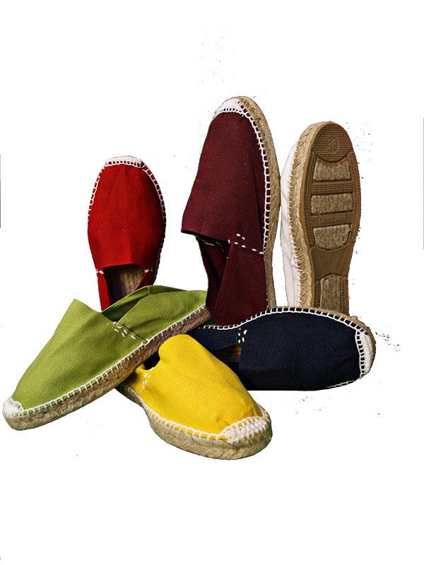28/03/2023 Alpargatas cosidas a mano en Cervera del rio Alhama, La Rioja. En yute y algodón, con suela de caucho, todos ellos materiales naturales y ecológicos.Parte de las alpargatas tienen la suela abierta y están cosidas con hilo blanco, mientras que en otras la suela es completa y se cosen con el hilo al tono de la lona. También hay algunas de media cuña, unas con el talón abierto y otras con lona de espiga y talón cerrado.Una gran variedad de colores; lisos, rayas y también algunas bicolores.Documentación adjunta: