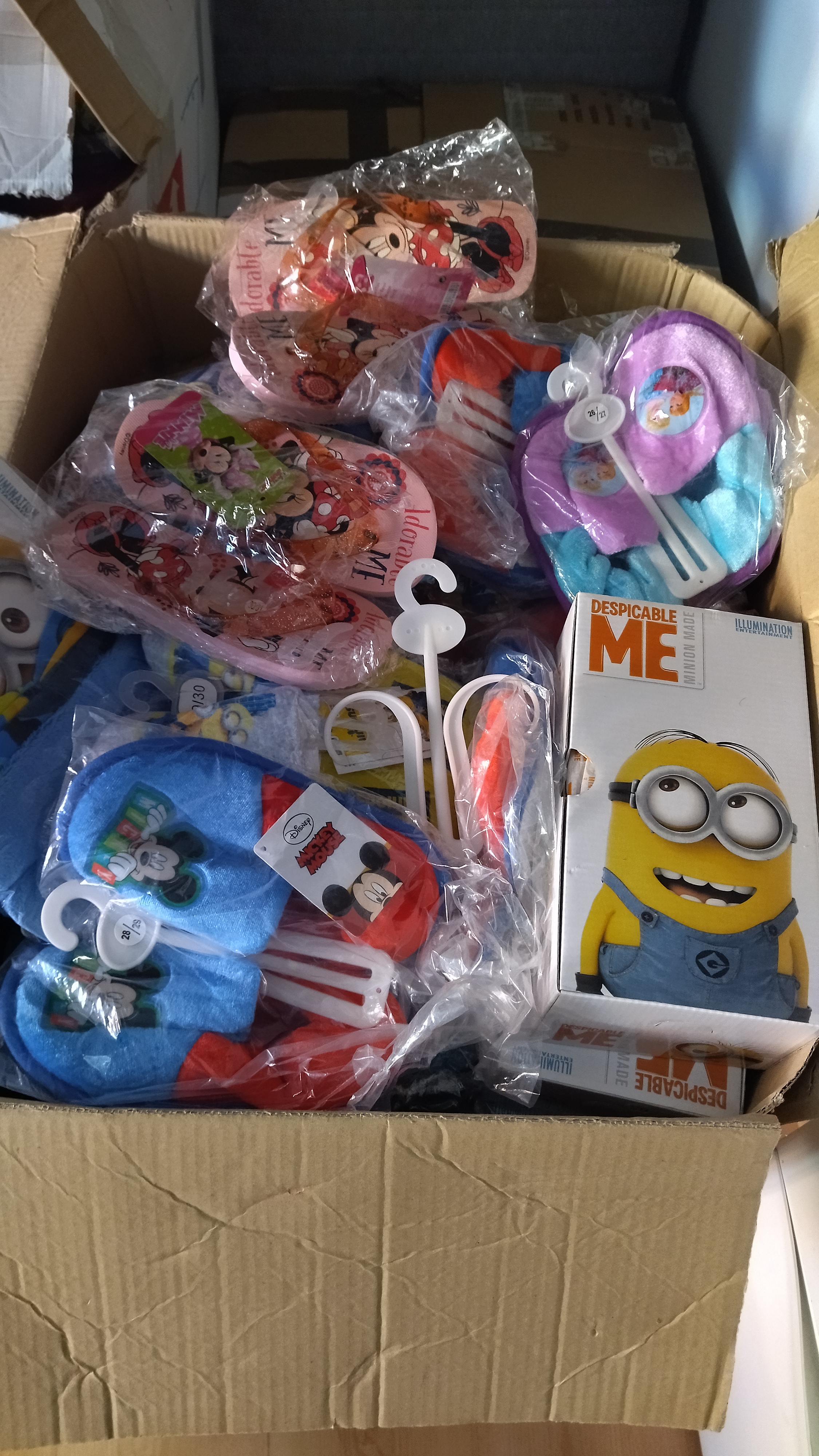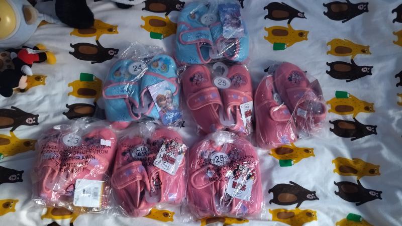 02/10/2023 El lote contiene:- Chubasquero Minnie Mouse, Talla 5-6- Chubasquero Frozen ,Talla 4- Botas de agua Patrulla Canina N º 30,24 y 22.- Zapatilla botín cerrada Minnie mouse N º 23,24,(2)25,26- Zapatilla botín cerrada Frozen N º 24,25- Zapatillas cerradas Mickey Mouse: N º 4 (28/29), 2 (26/27)- Zapatillas cerradas Frozen: N º 1 (26/27)- Zapatillas cerradas Minions: N º33,32,29,28- Zapatillas babuchas Mickey Mouse: N º 1(27/28),1 (31/32),1 (33/34)- Zapatillas babuchas Minnie Mouse: N º 1(29/30)- Zapatillas babuchas Minions: N º 2(29/30), 1(31/32), 1(33/34)- Chanclas Minnie Mouse N º 26/27, 28/29,30/31,32/33- Chanclas Minnie Mouse N º 2(26/27), 1(30/31),1(32/33),2(34/35)- 5 Orejeras Mickey Mouse- 4 Orejeras Minnie Mouse- 2 Orejeras Minions- 3 Braga cuello gorro Minions- 2 Braga Minions- 5 Gorro con guantes Minions- 2 Gorro con guantes Olaf Frozen- 1 Gorro y guantes Patrulla CaninaY de regalo:- 4 Paraguas MinionsTodo valorado en 4000€ liquidación por tan solo 650€ + gastos de envio por cuenta del comprador.Tengo mas cosas , preguntar solo interesados realmente.Documentación adjunta: