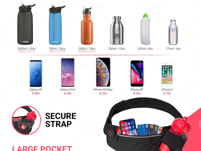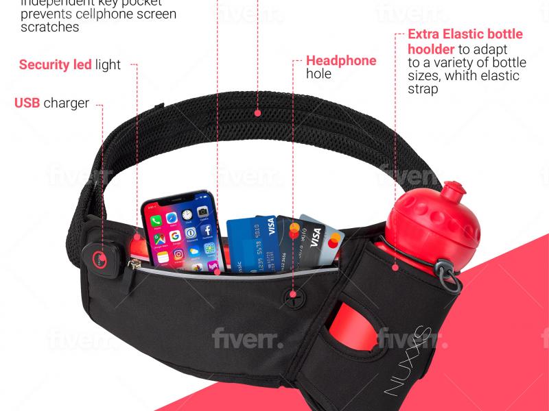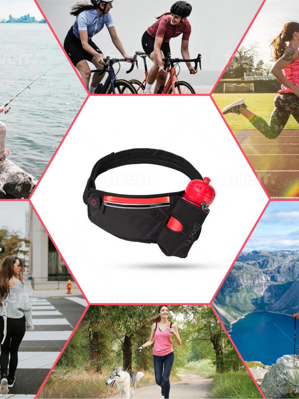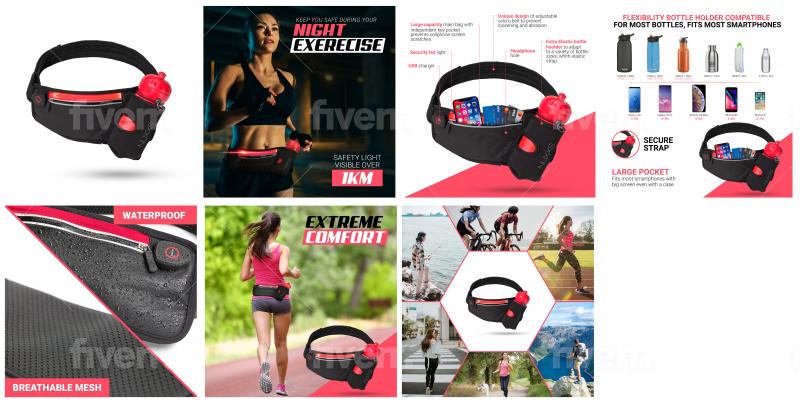450 unidades de Riñonera deportiva con soporte para botellas y luz de seguridad.