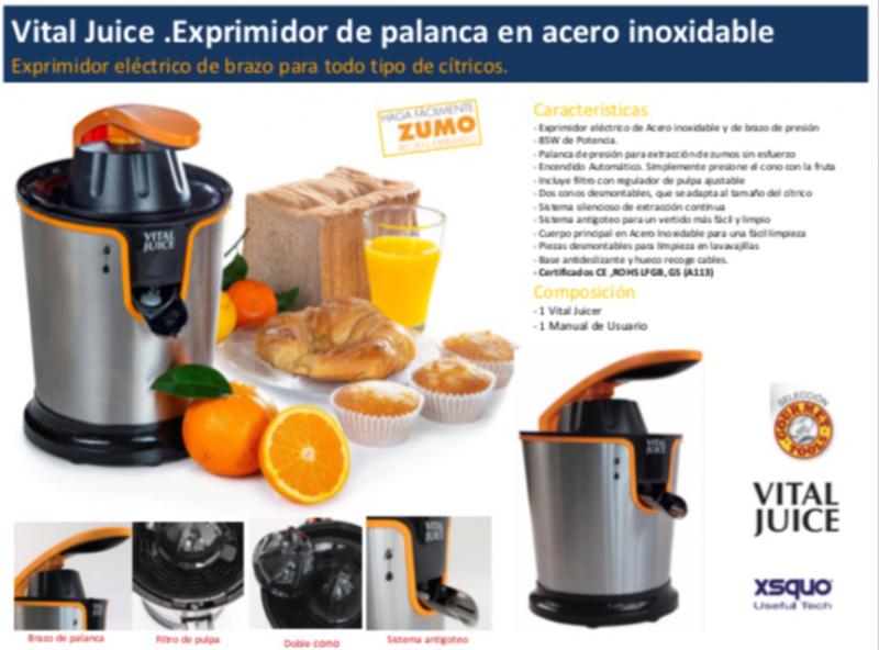 • Exprimidor eléctrico de Acero inoxidable y de brazo de presión.