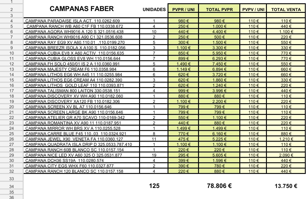 29/09/2021 LOTE 125 UNIDADES- 110€/UNIDAD / TOTAL 13750€MARCA FABER ( ALTA GAMA) NUEVAS, CAJAS ORIGINALES MODELOS Y MEDIDAS VARIADASPRECIOS ORIENTATIVOS INTERNET: 78.006€Documentación adjunta: