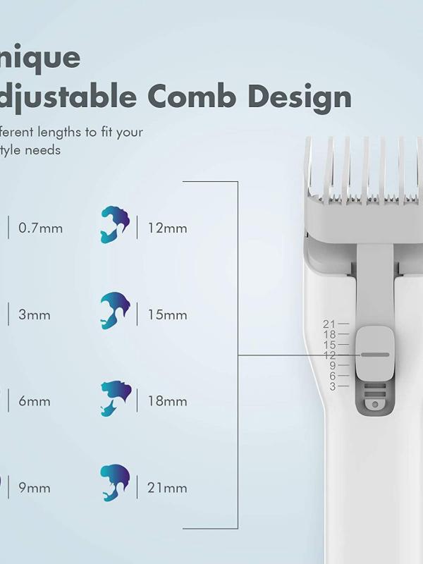 - Diseño único de peine de posicionamiento con tipo deslizante: el kit de corte de pelo tiene un diseño de peine de posicionamiento deslizante, puedes evitar reemplazar con frecuencia los peines de diferentes longitudes para un funcionamiento más conveniente; puede ser adecuado para 8 peinados de diferentes longitudes al apoyar 8 rangos de ajuste de longitud precisos de 0.028 in a 0.827 in. Puedes elegir libremente la longitud exacta del peinado que quieras; la cuchilla de corte de pelo también se puede desmontar completamente y utilizar como una maquinilla de afeitar.
