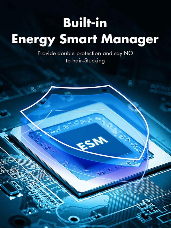 - Diseño seguro y antivibración: ¿te preocupa dañar tu cabello y cuero cabelludo? Debido a que las cuchillas son demasiado romas para tirar de tu cabello para otros cortapelos en el mercado actual. Este recortador de pelo tiene un diseño especial de ESM inteligente antivibración, puede garantizar que el cabello no se atasque, cuando la herramienta de corte de pelo todavía puede funcionar a alta velocidad con menor potencia de la batería. Protege tu cabello y cuero cabelludo de tirones, te permite recortar y cortar el cabello de forma más segura y segura.