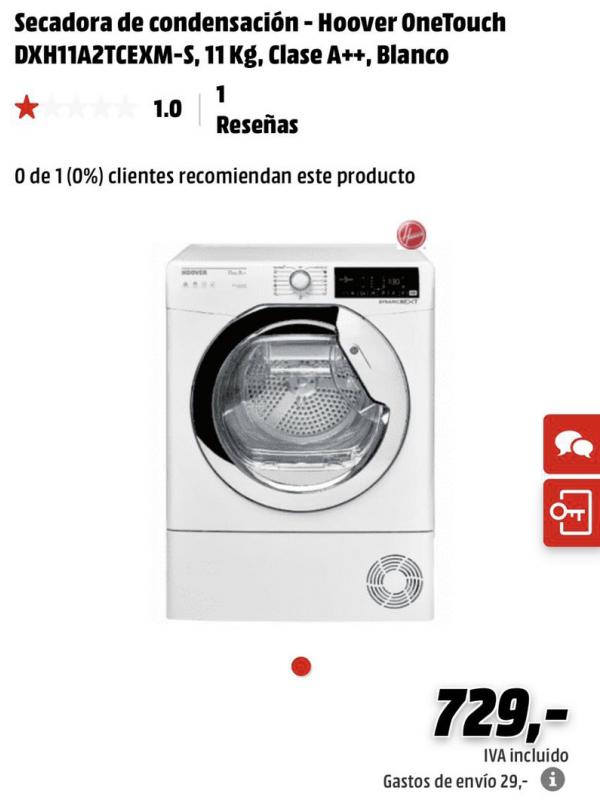 09/11/2020 LOTE DE SECADORAS HOOVER/CANDY CONDENSACIÓN BOMBA DE CALOR A++60 UNIDADES 189 EUROS/UNIDADNUEVAS CON TARA1 AÑO DE GARANTÍA DE FUNCIONAMIENTOEtiquetas: