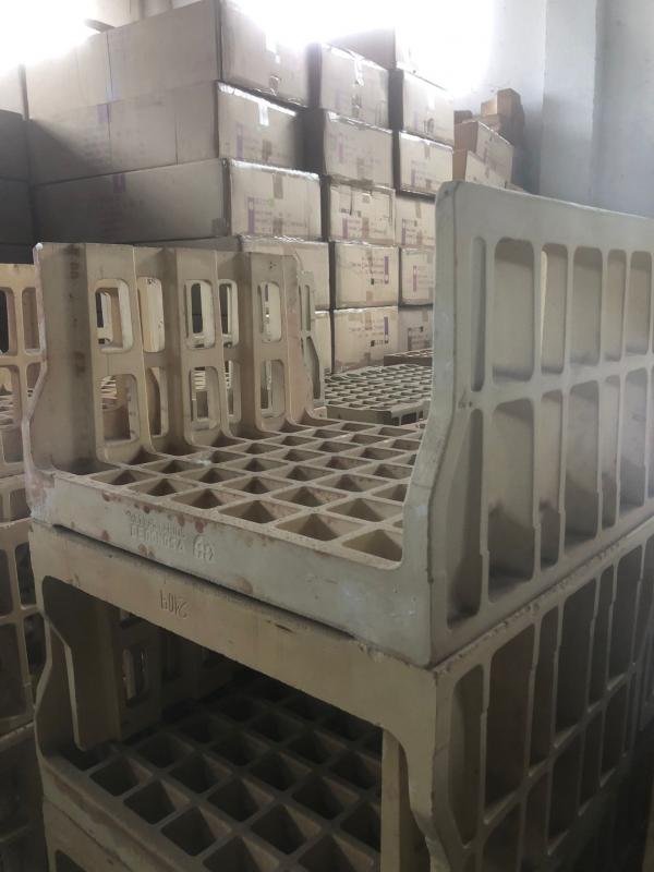 >Lote de 2562 unidades de Casetones refractarios para cocción en horno.>Resistencia 2025º centigrados.Diferentes precios y medidas para compra individual.Precio indicado por el lote completo.>* 58 cm x 31 cm x 38.5 cm - 988 ud. - 18 €/u* 58 x 51 x 34.5 - 28 ud. - 20 €/u* 39 x 22.5 x 36.5 - 840 ud. - 16 €/u* L 18 x 29.5 x 51 - 18 ud. - 15 €/u* L 29.5 x 31 x 39 - 88 ud. - 12 € /uCasetón doble* 36 x 15 x 29.5 - 525 ud. - 12 €/uCasetón simple* 21 x 15 x 32.5 - 75 ud. 10 €/u.Etiquetas: