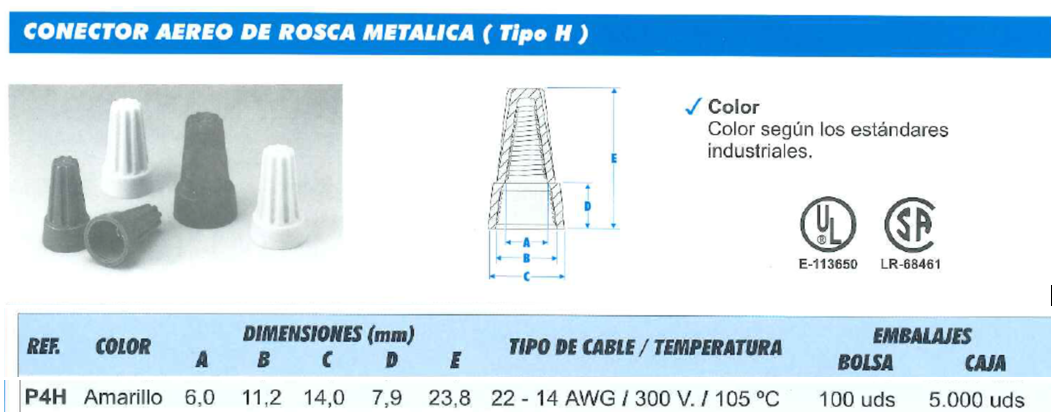15/03/2022 Conector aereo de rosca para cable 22-14AWG / 300V / 105ºC.Bolsa de 100ud.Documentación adjunta: