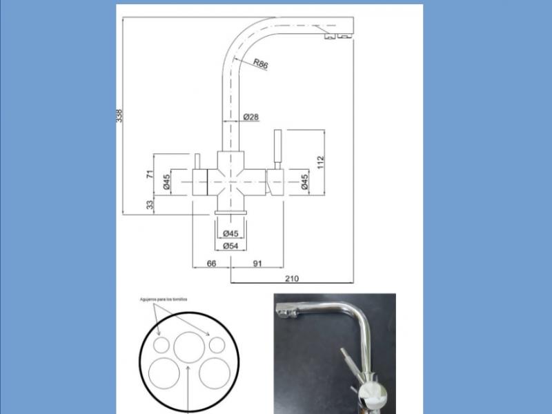 - Incluye los 3 latigullos, la conexión al tubo de osmosis y todo lo necesario para fijar el grifo, tal como se ve en las fotos.Etiquetas: