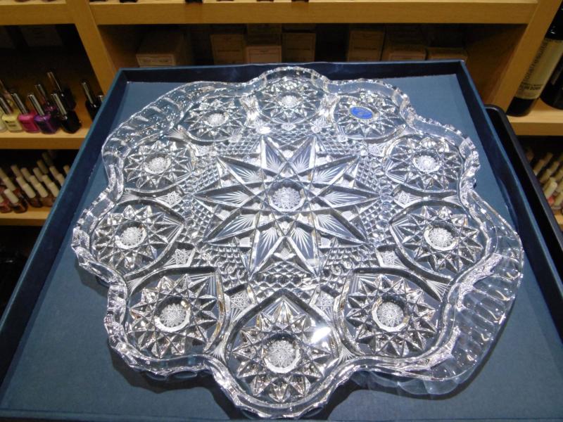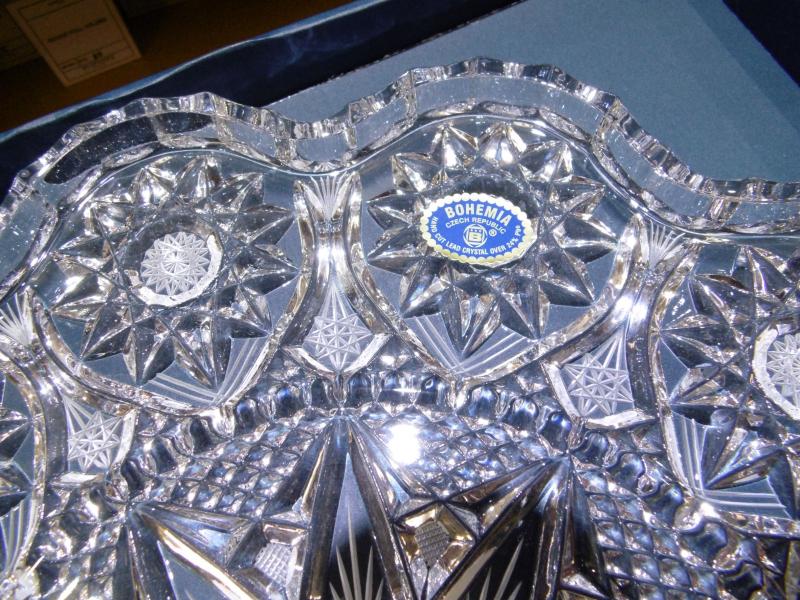 BANDEJA DE CRISTAL DE BOHEMIA TALLADO DE 38 CMS .