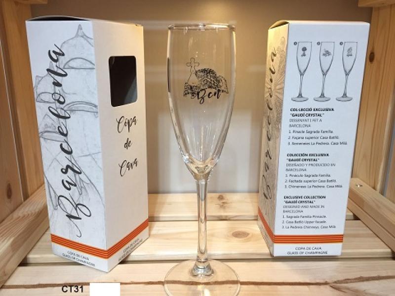 08/10/2021 80% de dto sobre el precio habitual.Copa de cava de cristal con serigrafía modernista de la Sagrada Familia, la Pedrera o la Casa Batlló.Caja de regalo no incluida.PRECIO POR UNIDAD: 1,90 €.Stock: 400 u.Etiquetas: