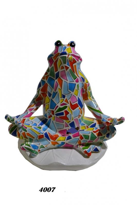 Figura de resina rana yogui diseño craquelado de Gaudí