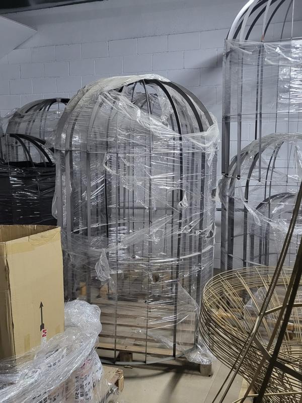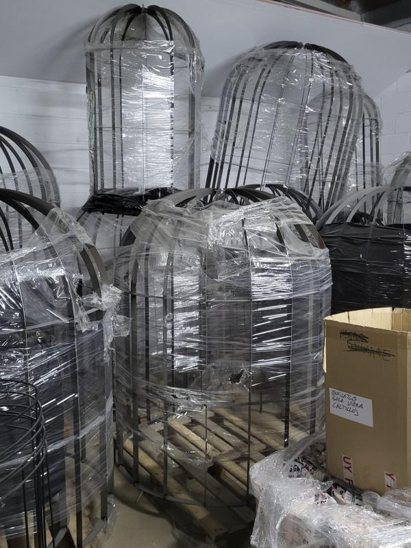 Varios tamaños y medidas Para poner en terraza con luces de navidad Como jaulas decorativas con plantas Para convertir en lámpara son de hierro barnizado para exterior MEDIDAS: 10 unidades-Ø120x150hcm 10 unidades-Ø100x125hcm 10 unidades-Ø80x100hcm 10 unidades-Ø60x75hcm PRECIO LOTE: 1200€ (30€ la unidad)