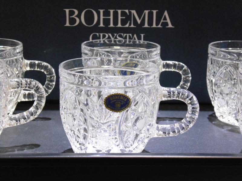 JUEGO DE SEIS TAZAS EN CRISTAL DE BOHEMIA TALLADO.