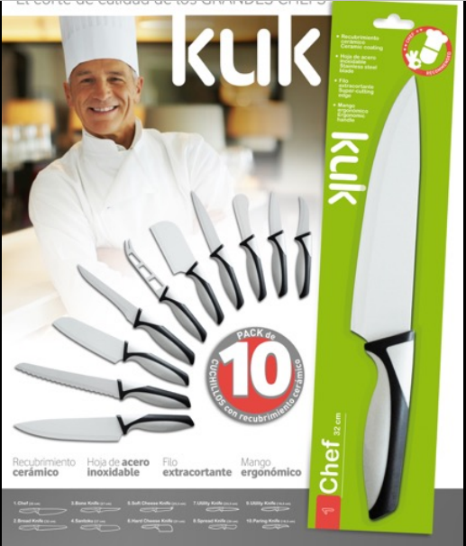 Kuk - Juego 10 Cuchillos de Cocina con Hoja de Acero y Recubrimiento cerámico