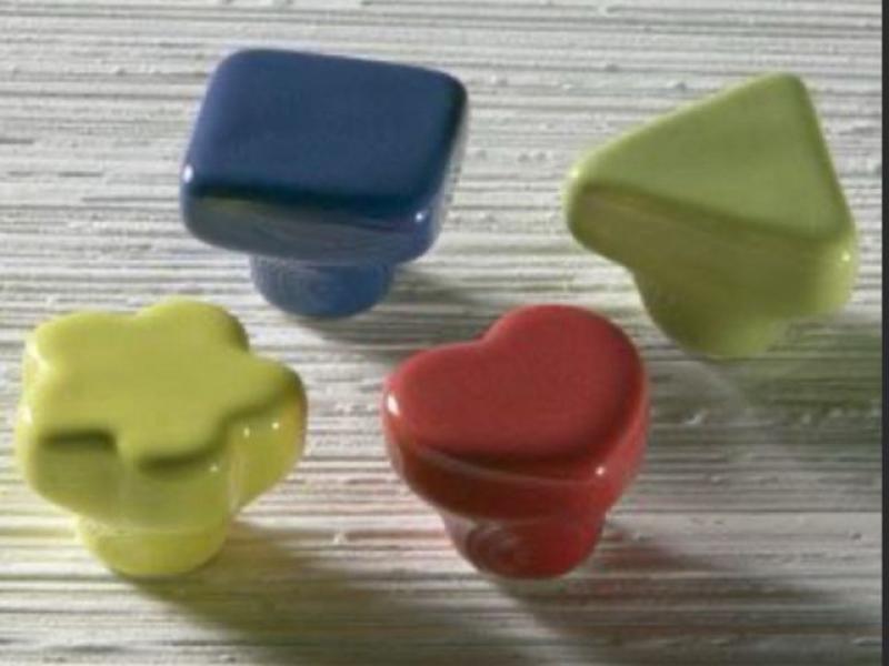 14- Pomos cerámica diferentes colores, formas: corazón, cuadrado, flor, triángulo - 1.704 unidades.