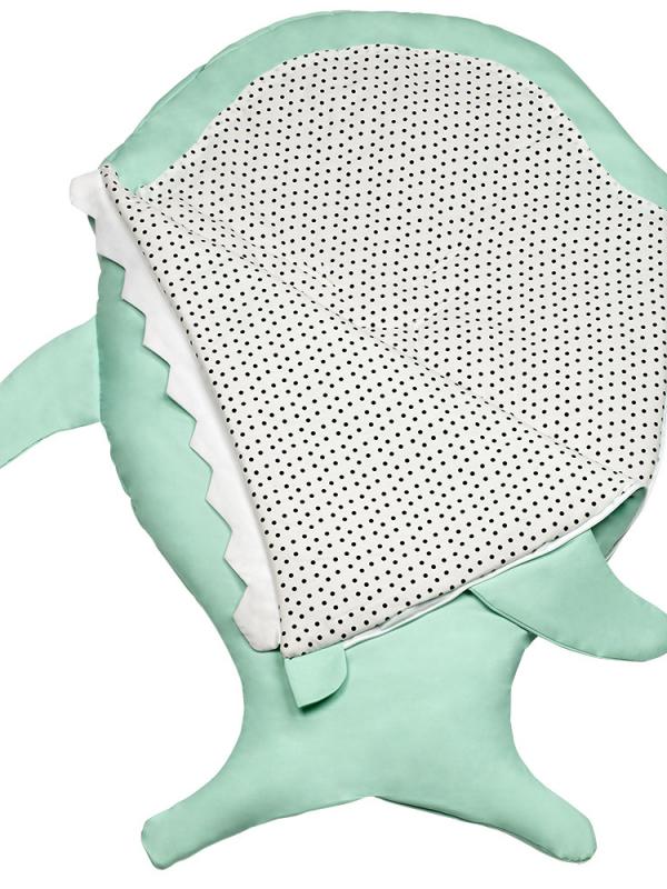 Se venden sacos con forma de tiburón validos tanto para la cuna como para el cochecito ya que disponen de los agujeros para el cinturón.