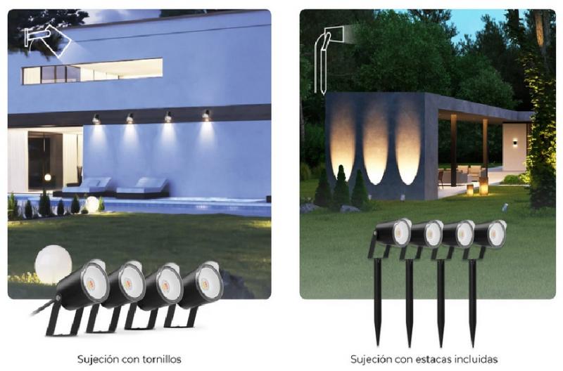 Set 4 focos outdoor SmartLED KSIX, WiFi + APP incluida, 18W, 900 lúmenes, RGBWIC, IP65, Ampliable, Estacas incluidas
