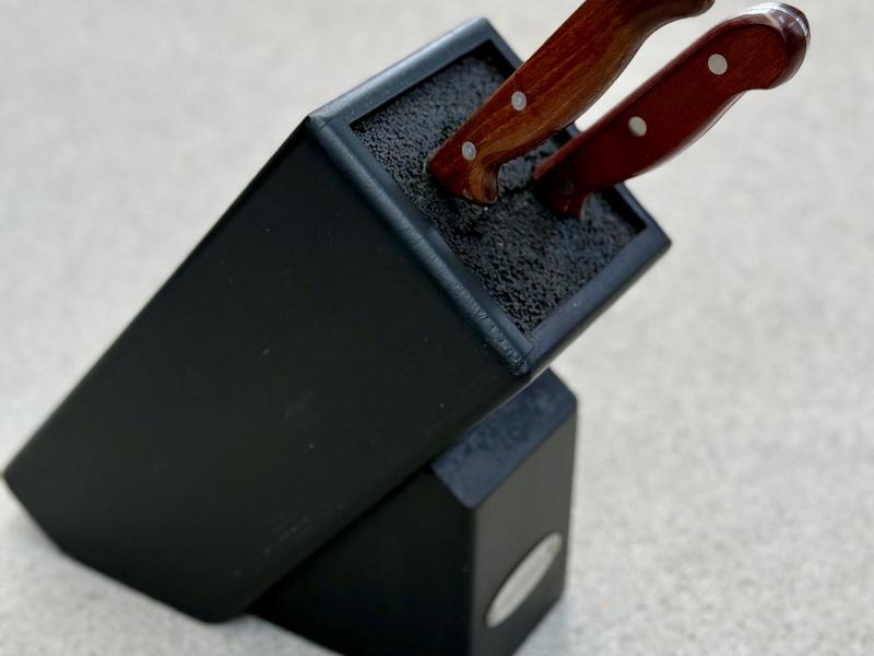 Ideal para guardar toda clase de cuchillos, tijeras de trinchar y chaira. Fondo extraíble para poder lavarlo.