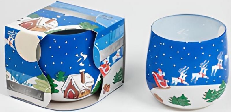 VELA PERFUMADA DECORADA NAVIDAD 1€ la unidad. Duración: 20 h Altura: 7,9 cm Diámetro: 7,2cm
