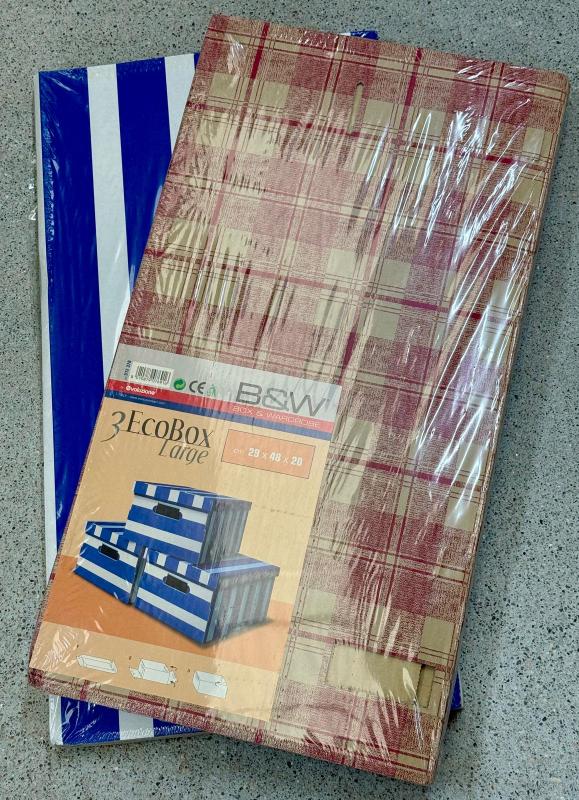 Pack de cajas de cartón con tapa resistentes, aptas para almacenaje con originalidad por su acabado decorado. Ideal para quedar a la vista en estanterías, armarios y vestidores, manteniendo el orden y decorando a la vez. Destacan por su versatilidad, ligereza y resistencia.