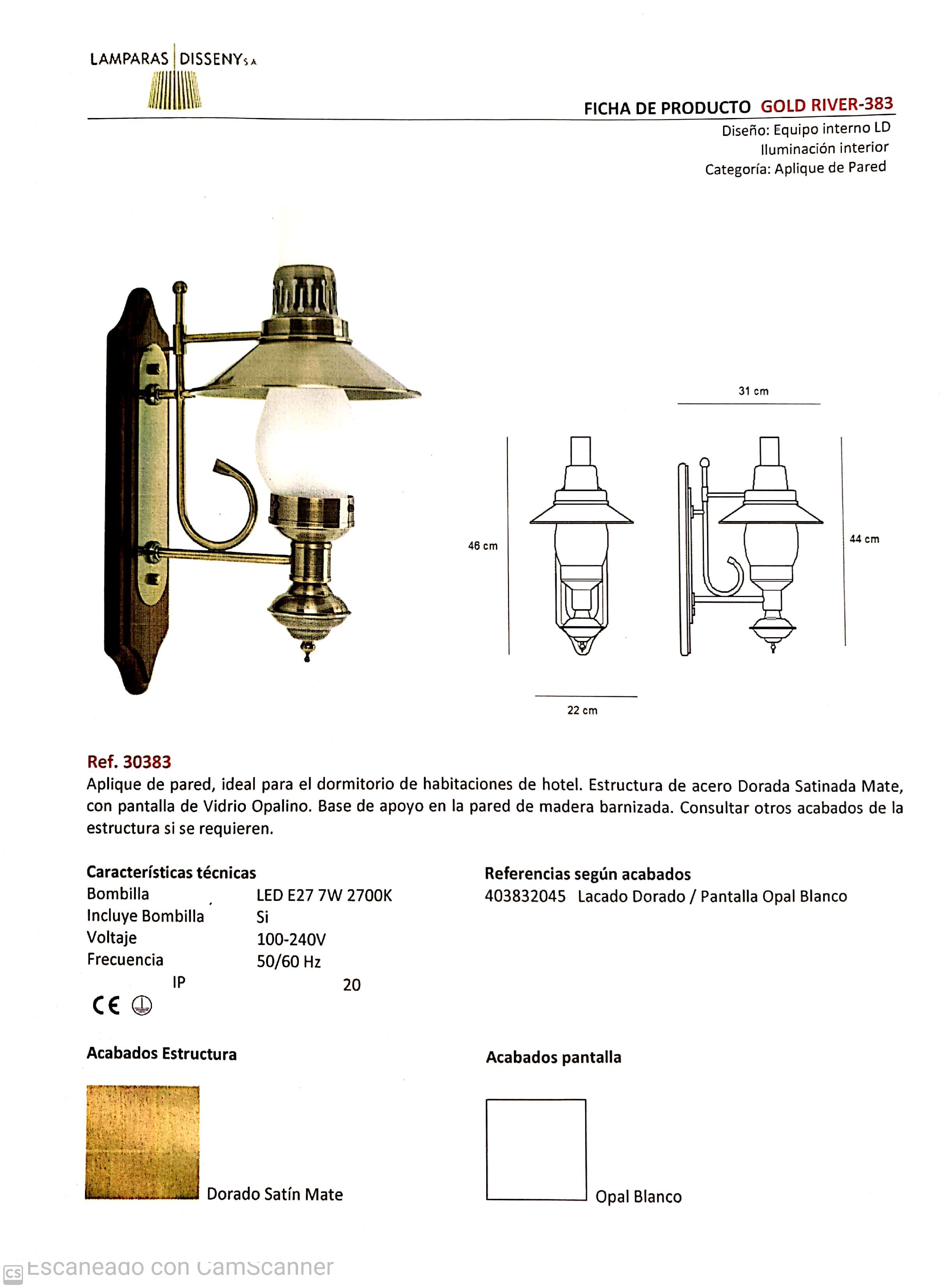 APLIQUE QUINQUE ORO MATE/ORO VIEJO PLACA MADERA