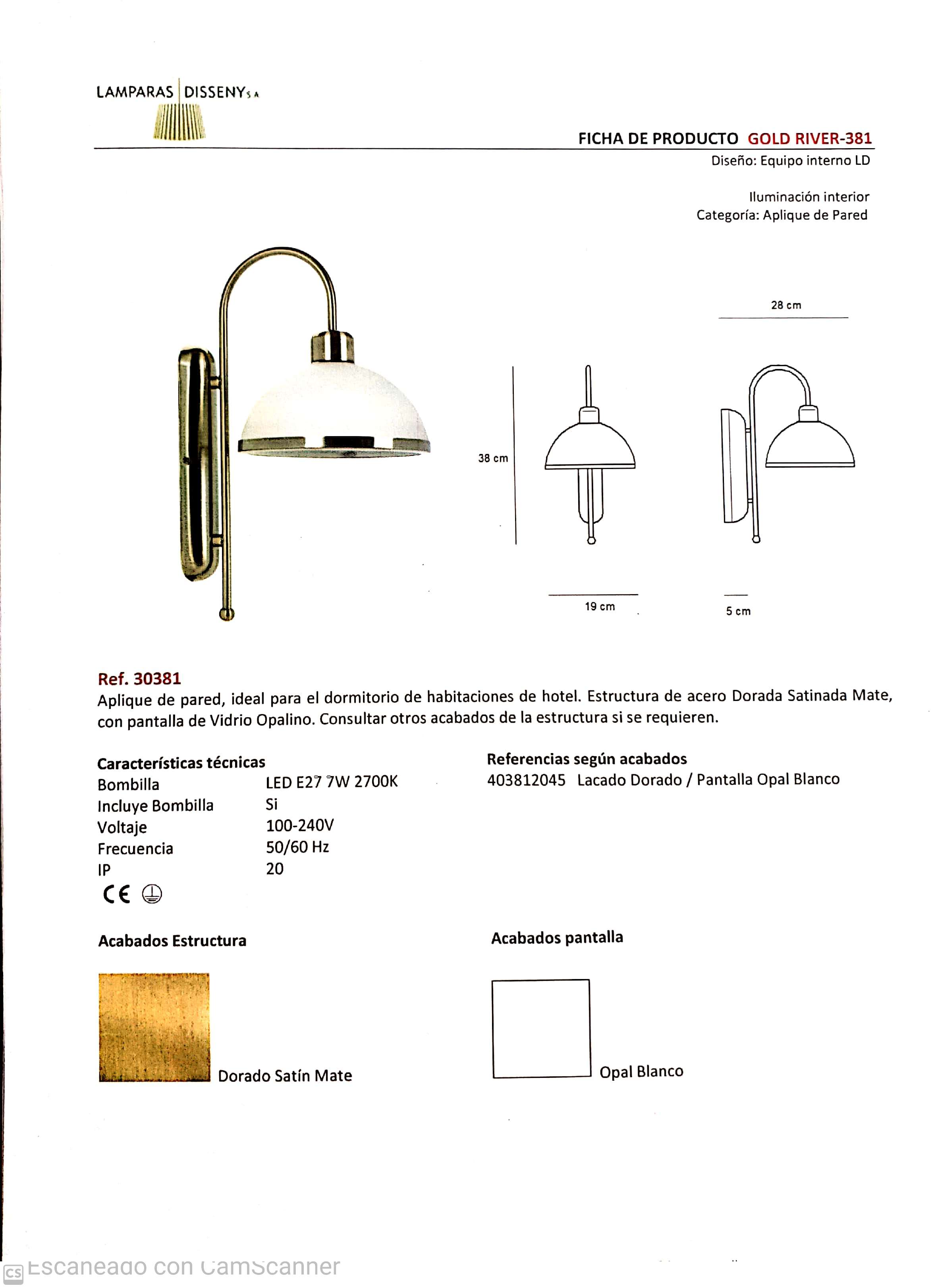 APLIQUE PARED ORO MATE 1 TULIPA DE CRISTAL: