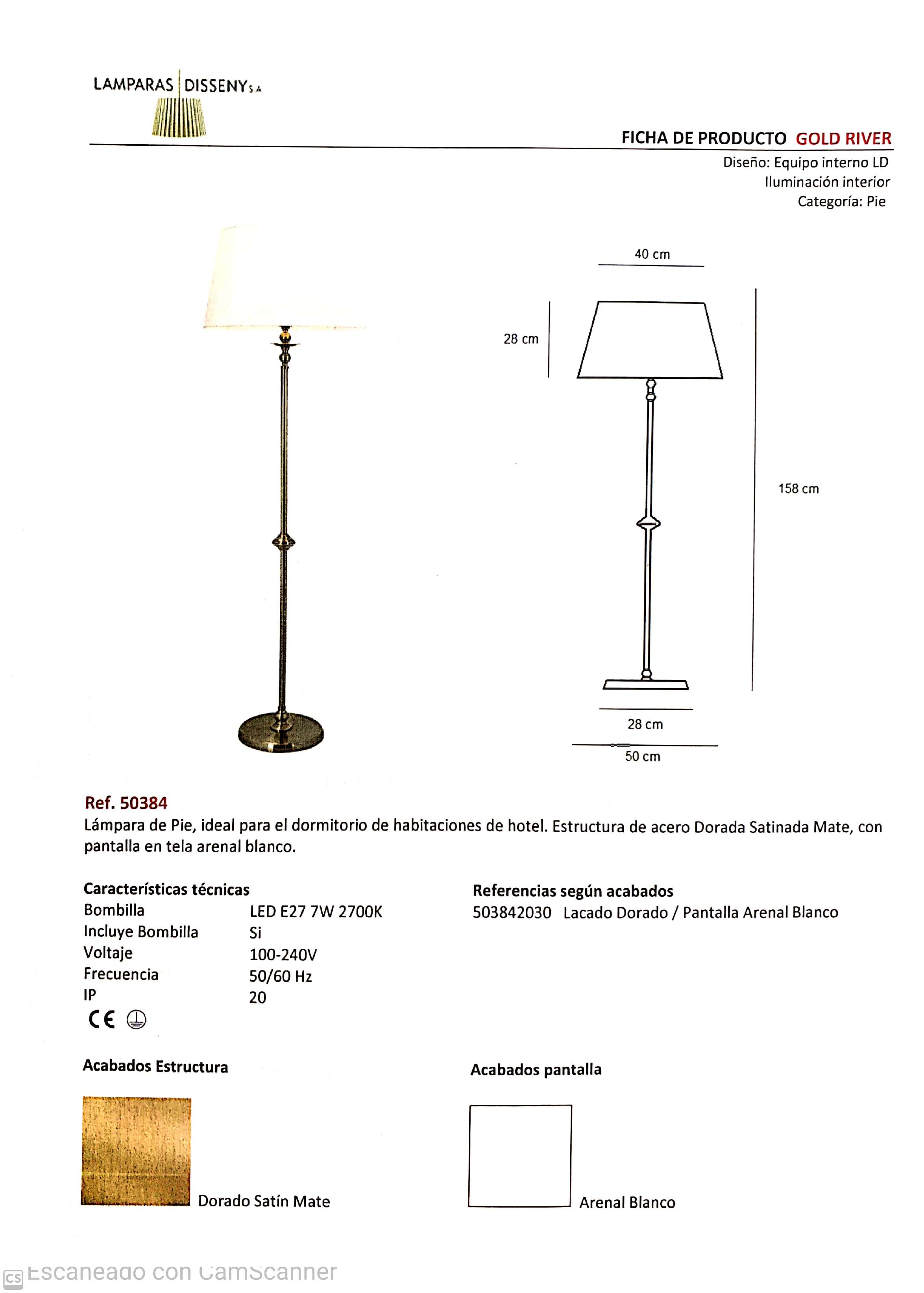 PIE SALON ORO-MATE CON PANTALLA BLANCA