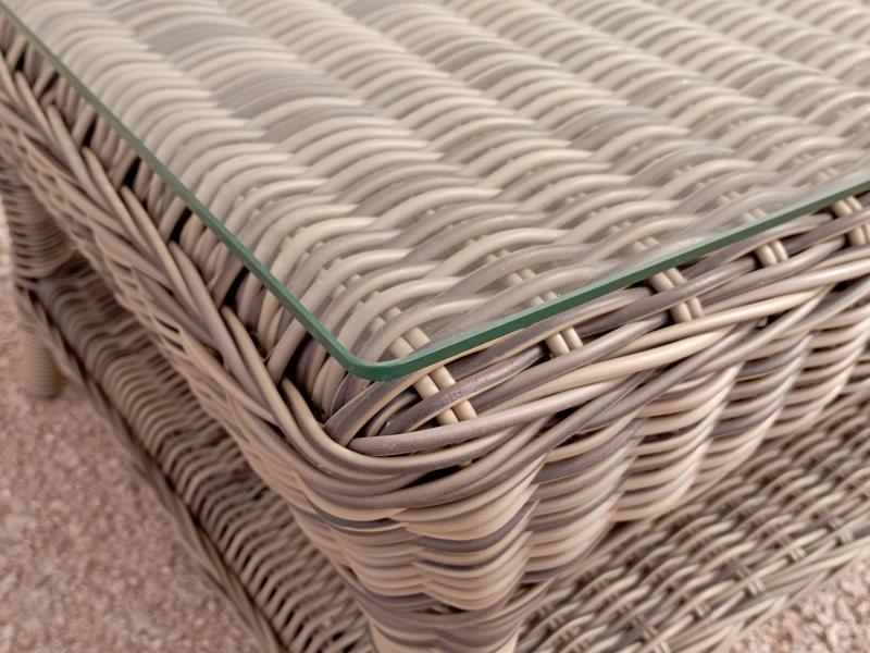 Liquidación stock mesa baja rectangular de ratán con cristal