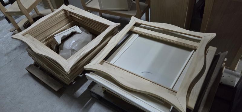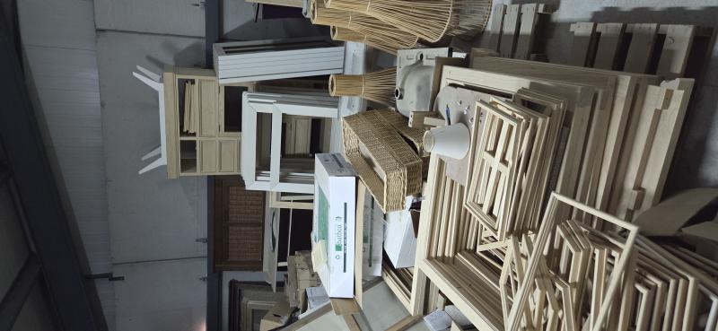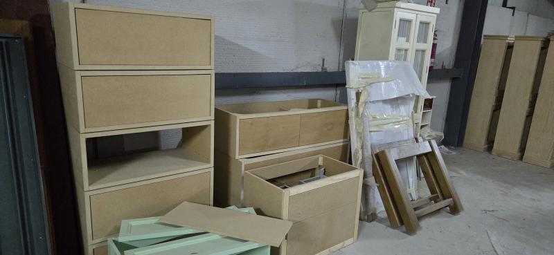 Lote de mas de 200 piezas. Compuesto por muebles en crudo y pintados. Muebles de baño, espejos, vitrinas, muebles de colgar, mesas de comedor, zapateros....Precio del lote 2900 euros.