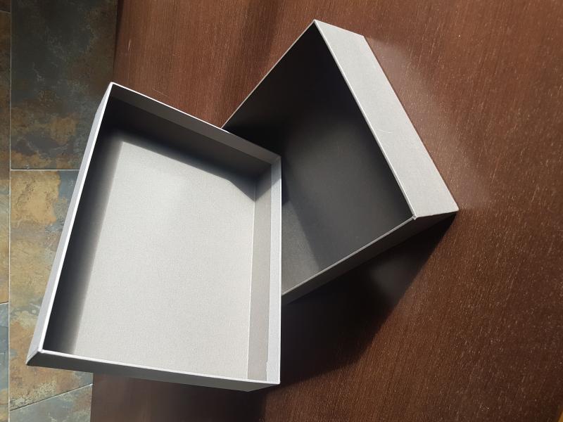 26/10/2021 CAJAS PEQUEÑAS: caja cerrada 28 x22 x8.4cm, se pueden ganar hasta 4cm de altura si no se baja la tapa completamente. Medidas interiores: 20.7x 27x 8cm. Hechas en carton de 2mm de grosor. 100 unidades aproximadamenteCAJAS GRANDES: caja cerrada 32x 44x 10.2cm, se pueden ganar hasta 4cm de altura si no se baja la tapa completamente. Medidas interiores:30x 42x 12.5cm. Hechas en carton de 5mm la base y en carton de 3mm la tapa. 150 unidades aproximadamente.Precio del lote 600€Etiquetas: