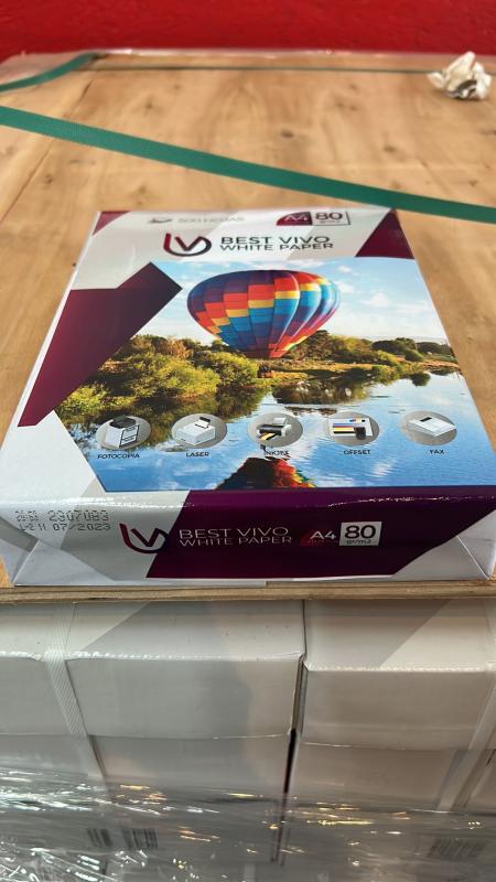 Lote de paquetes de 500 folios white paper A4 (21x29,7 cm) de la marca Best Vivo. El precio valorado de cada paquete es de 6,13 euros.