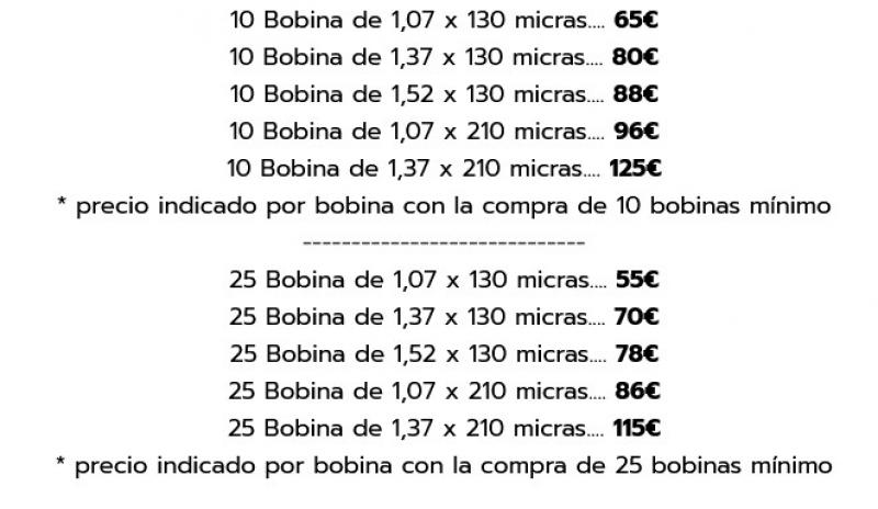 Se vende en lotes de 10 o 25 bobinas de la misma dimensión y gramaje