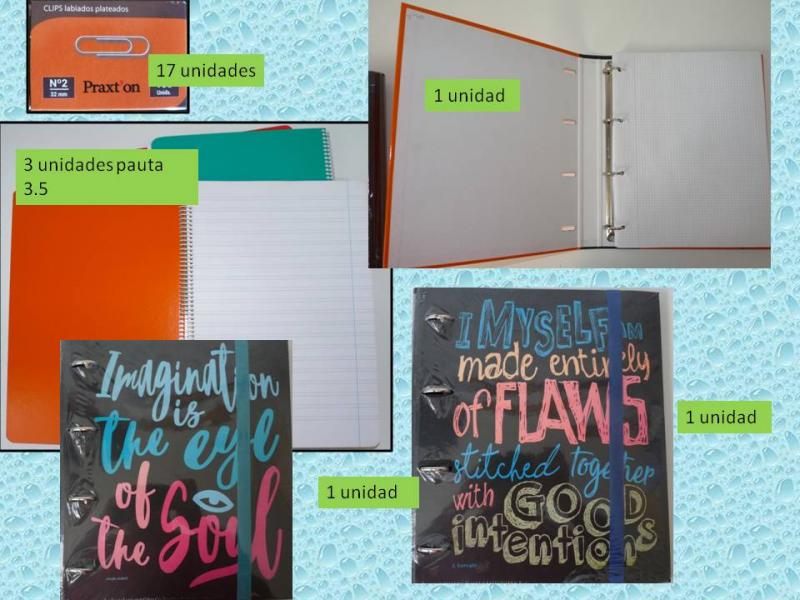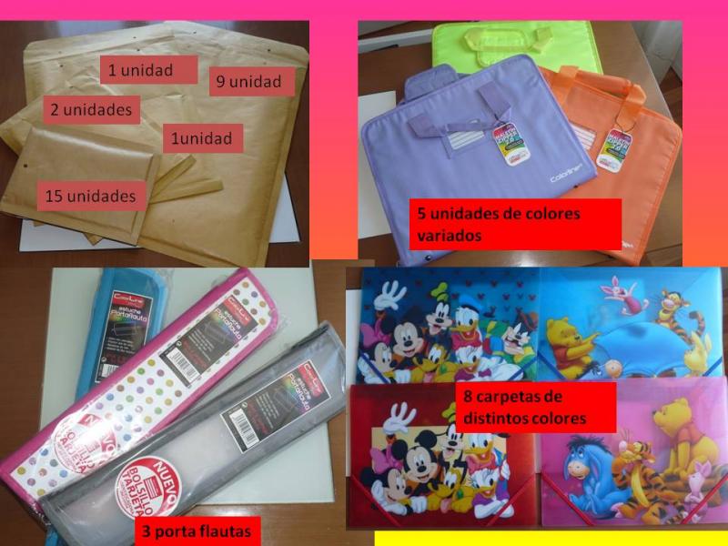 Lote compuesto por flautas, carpetas cuadernos ,reglas ,clips. Todo nuevo sin estrenar