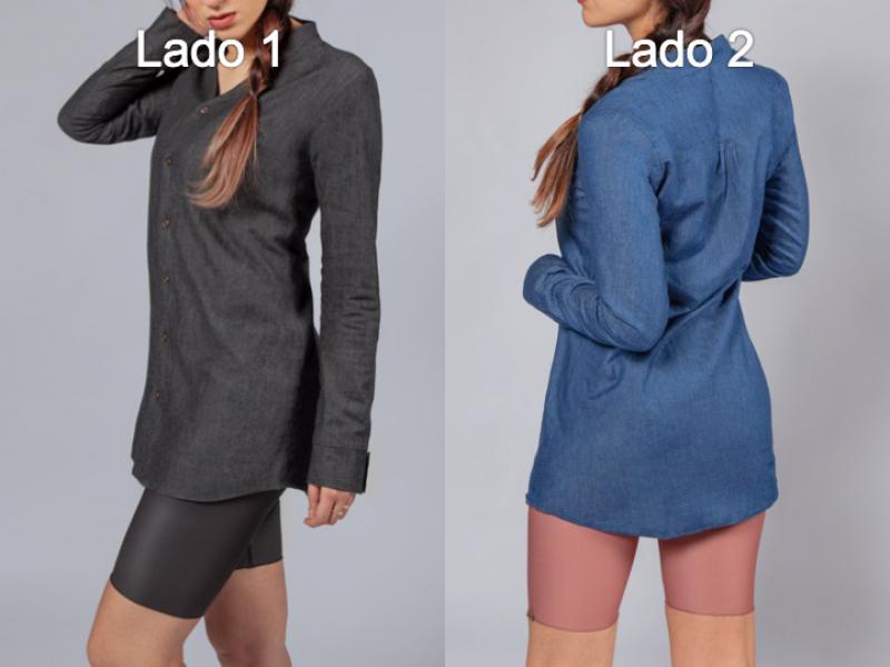 Camisa larga Reversible (doble cara) : lado 1 Denim claro / lado 2 Denim oscuro.