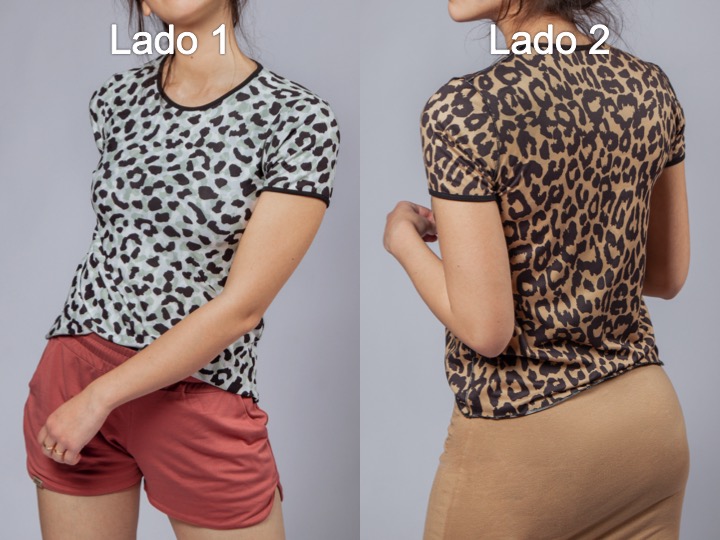 Camiseta Manga Corta Reversible (doble cara) : lado 1 Leopardo marrón / lado 2 Leopardo blanco