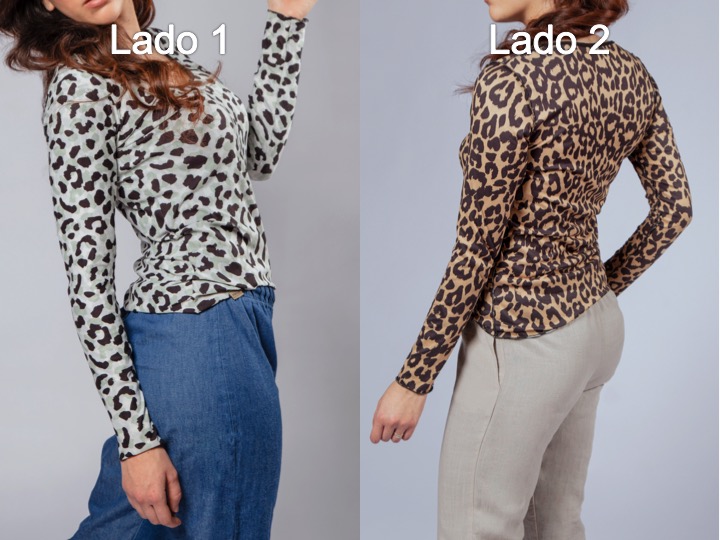 Camiseta Manga Larga Reversible (doble cara) : lado 1 Leopardo marrón / lado 2 Leopardo blanco